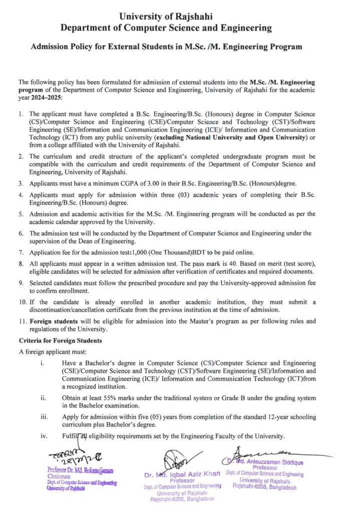Admission Policy for External Students in M.Sc. /M. Engineering Program