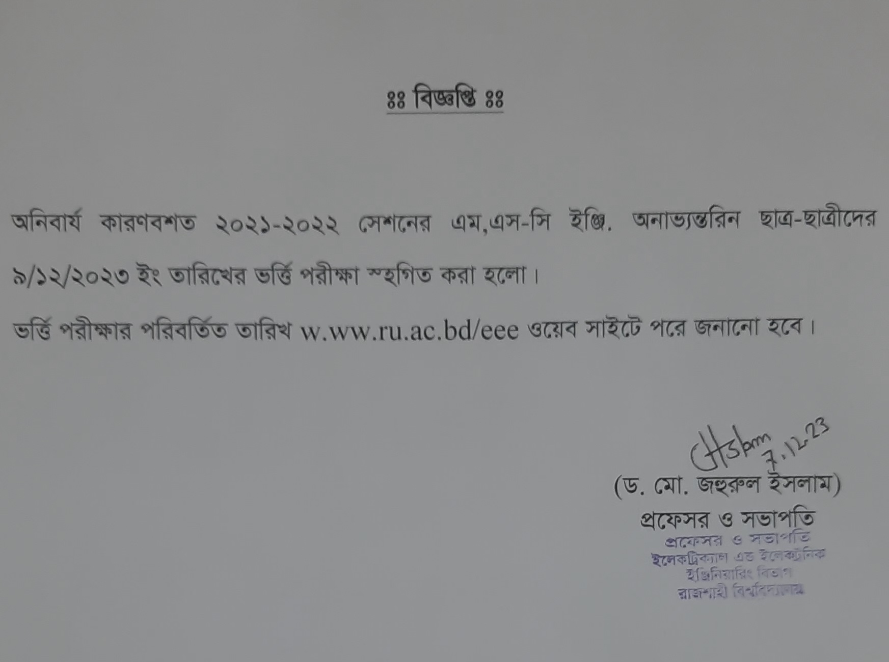 Latest Notices 02Nov Class Schedule Effective from 1st November, 2025 10Aug 2024-2025 EEE New Student Orientation Class 08Jul Class Schedule Effective from 07-07-2025 19Sep Orientation Class of EEE Students 2023-2024 20Feb ২০২১-২০২২ সেশনের মাস্টার্স কোর্সে বহিরাগত ছাত্র-ছাত্রীদের ভর্তি স্থগিত প্রসঙ্গে 30Dec মাস্টার্স ২০২১-২০২২ শিক্ষা বর্ষে ভর্তি সংক্রান্ত বিজ্ঞপ্তি 07Dec ২০২১-২০২২ এর এম,এস-সি ইঞ্জি. অনাভ্যন্তরিন ছাত্র-ছাত্রীদের ভর্তির তারিখ স্থগিত করা হলো 27Nov ২০২১-২০২২ সেশনে মাস্টার্স-এ ভর্তির সংশোধিত বিজ্ঞপ্তি 15Nov M.Sc. Engg. 2021-2022 Admission Notice 24Sep Orientation of First Year (Session 2022 -2023) Students 21Sep Class Routine effective from 7th August 2023 09Mar Class Routine Effective from 27 March, 2023 29Dec পরিজন উপবৃত্তি 06Nov Orientation of 1st Year students of session 2021 – 2022 02Feb Commonwealth Online Scholarships for Final Year Bachelor and Master’s Students 01Feb Notice for Online Class 24Nov বোর্ড বৃত্তি নবায়ন বিজ্ঞপ্তি