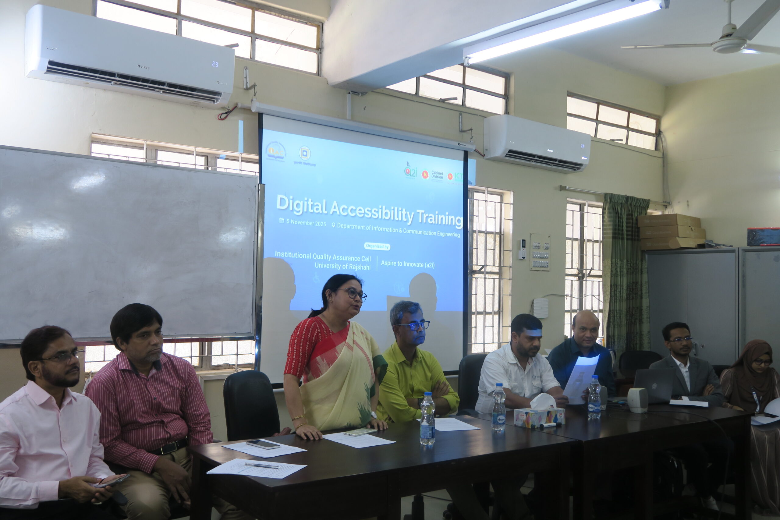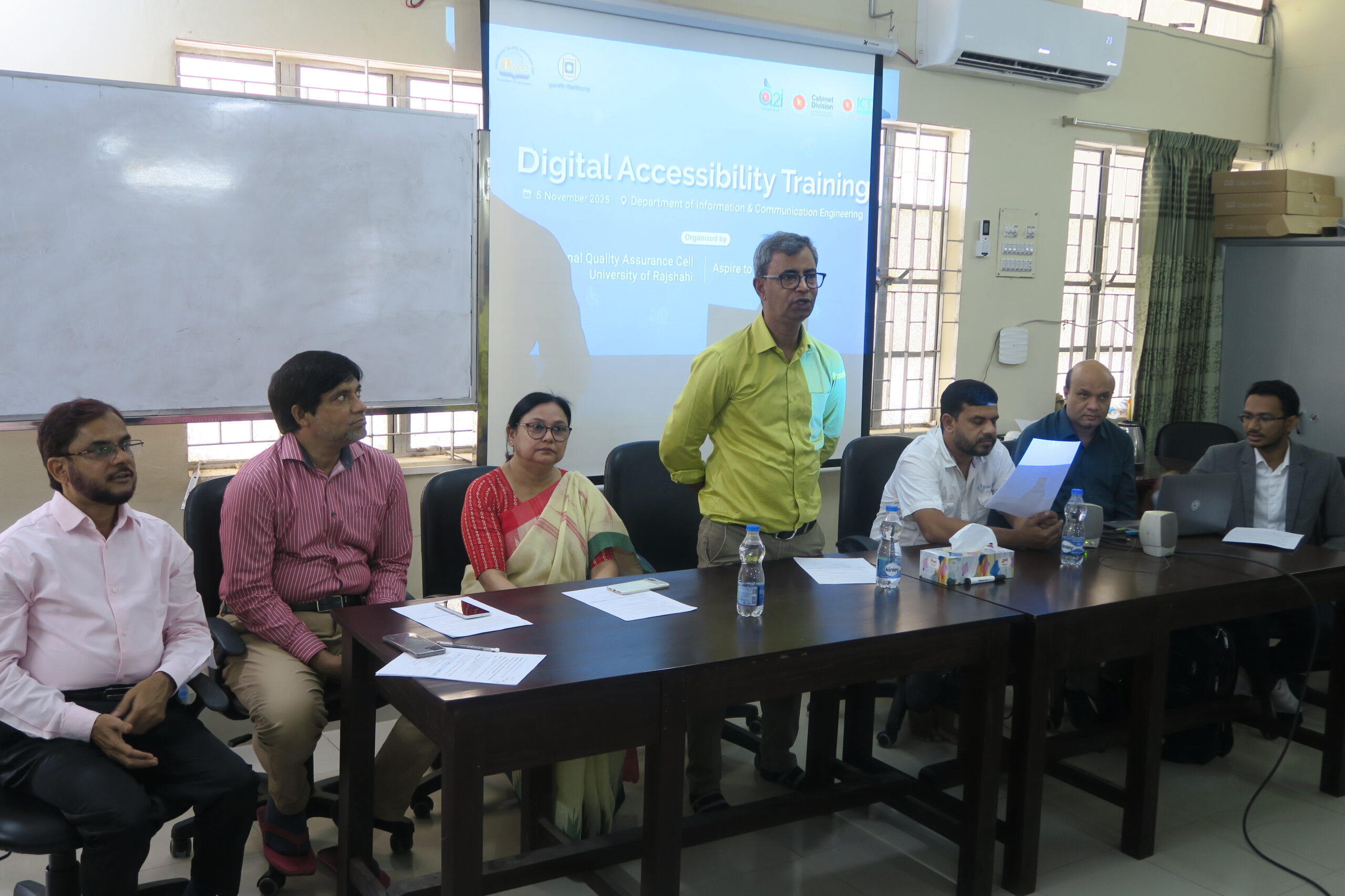রাজশাহী, ৫ নভেম্বর ২০২৫: প্রতিবন্ধী ব্যক্তিদের জন্য অন্তর্ভুক্তিমূলক ডিজিটাল প্রযুক্তি উন্নয়নে প্রকৌশল বিভাগের শিক্ষার্থীরাই আগামী দিনের মূল চালিকা শক্তি—এই বিশ্বাস সামনে রেখে রাজশাহী বিশ্ববিদ্যালয়ের ইনফরমেশন অ্যান্ড কমিউনিকেশন ইঞ্জিনিয়ারিং বিভাগে আজ ‘ডিজিটাল অ্যাক্সেসিবিলিটি’ বিষয়ক দিনব্যাপী প্রশিক্ষণ কর্মশালা অনুষ্ঠিত হয়েছে। এসপায়ার টু ইনোভেট (এটুআই)-এর ডিজএবিলিটি ইনোভেশন ল্যাবের আয়োজনে এবং ইনস্টিটিউশনাল কোয়ালিটি অ্যাস্যুরেন্স সেল (আইকিউএসি) বিশ্ববিদ্যালয়ের সহযোগিতায় অনুষ্ঠিত এই কর্মশালায় অংশ নেন বিভিন্ন বিভাগের শিক্ষার্থীরা।