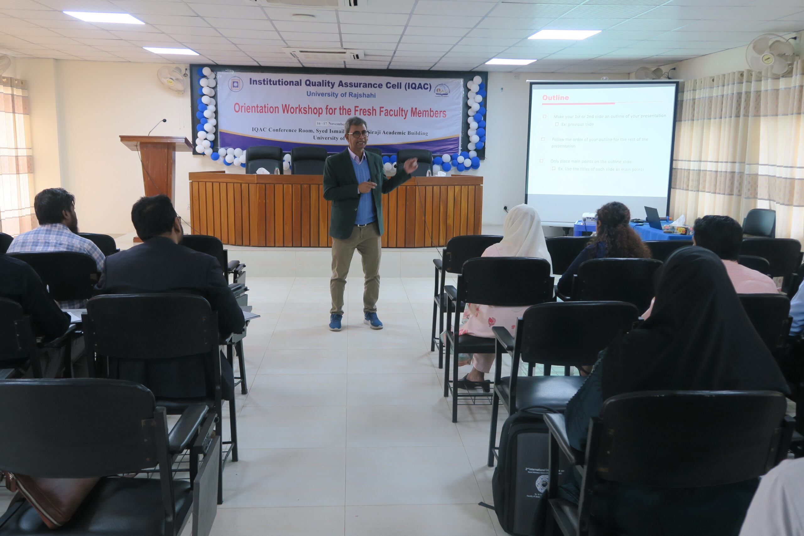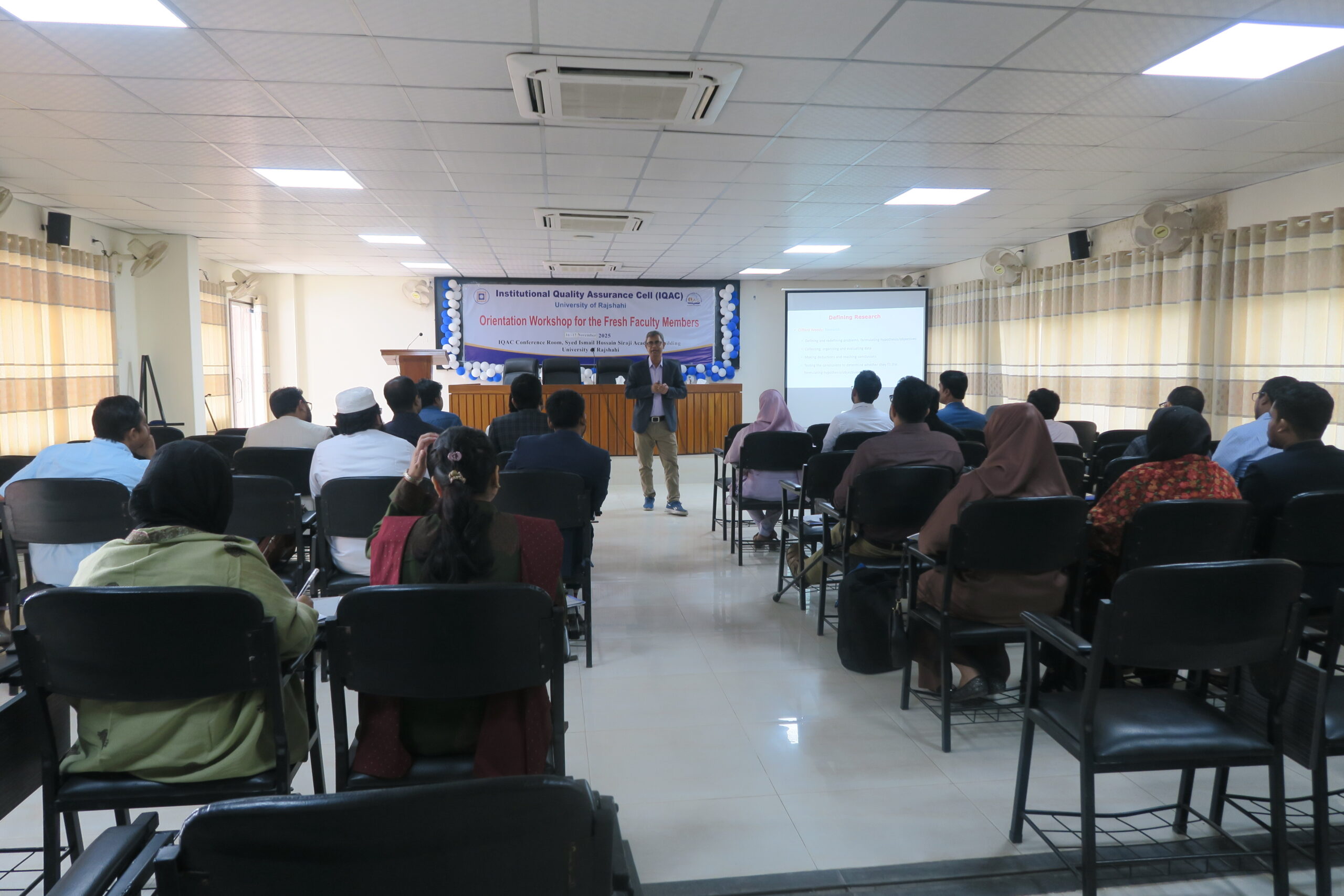 ইনস্টিটিউশনাল কোয়ালিটি অ্যাসুরেন্স সেল (আইকিউএসি) বিশ্ববিদ্যালয়ের প্রোগ্রামসমূহের অ্যাক্রেডিটেশন প্রাপ্তির লক্ষ্যে শিক্ষার গুণগত মান উন্নয়নে বিভিন্ন কর্মসূচি পরিচালনা করে আসছে। এরই ধারাবাহিকতায় রাজশাহী বিশ্ববিদ্যালয়ে সদ্য নিয়োগপ্রাপ্ত শিক্ষকবৃন্দের জন্য ‘Orientation Workshop for the Fresh Faculty Members’ শিরোনামে চলমান কর্মশালার ২য় পর্বের ৩য় গ্রুপে ১০টি বিভাগের ২৫জন শিক্ষককে নিয়ে প্রশিক্ষণ কর্মশালা অনুষ্ঠিত হয়।