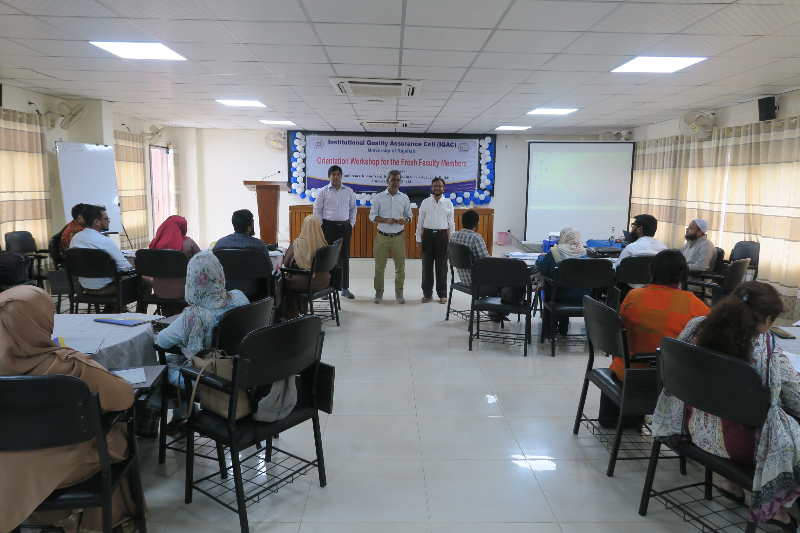 ইনস্টিটিউশনাল কোয়ালিটি অ্যাসুরেন্স সেল (আইকিউএসি) বিশ্ববিদ্যালয়ের প্রোগ্রামসমূহের অ্যাক্রেডিটেশন প্রাপ্তির লক্ষ্যে শিক্ষার গুণগত মান উন্নয়নে বিভিন্ন কর্মসূচি পরিচালনা করে আসছে। এরই ধারাবাহিকতায় গত ০৭ অক্টোবর ২০২৫ নতুন যোগদানকৃত সকল শিক্ষকদের নিয়ে ‘Orientation Workshop for the Fresh Faculty Members’ শিরোনামে রাজশাহী বিশ্ববিদ্যালয়ের বিভিন্ন একাডেমিক ও প্রশাসনিক কাঠামো, অর্ডিন্যান্স, বিভিন্ন দায়িত্ব, শিক্ষণ পদ্ধতিসহ আনুষঙ্গিক বিষয়ে নির্দেশনামূলক ৫দিন ব্যাপী ওয়ার্কশপের উদ্বোধনী অনুষ্ঠান আইকিএসি-র কনফারেন্স কক্ষ (কক্ষ নং-৪০৫) এ অনুষ্ঠিত হয়।