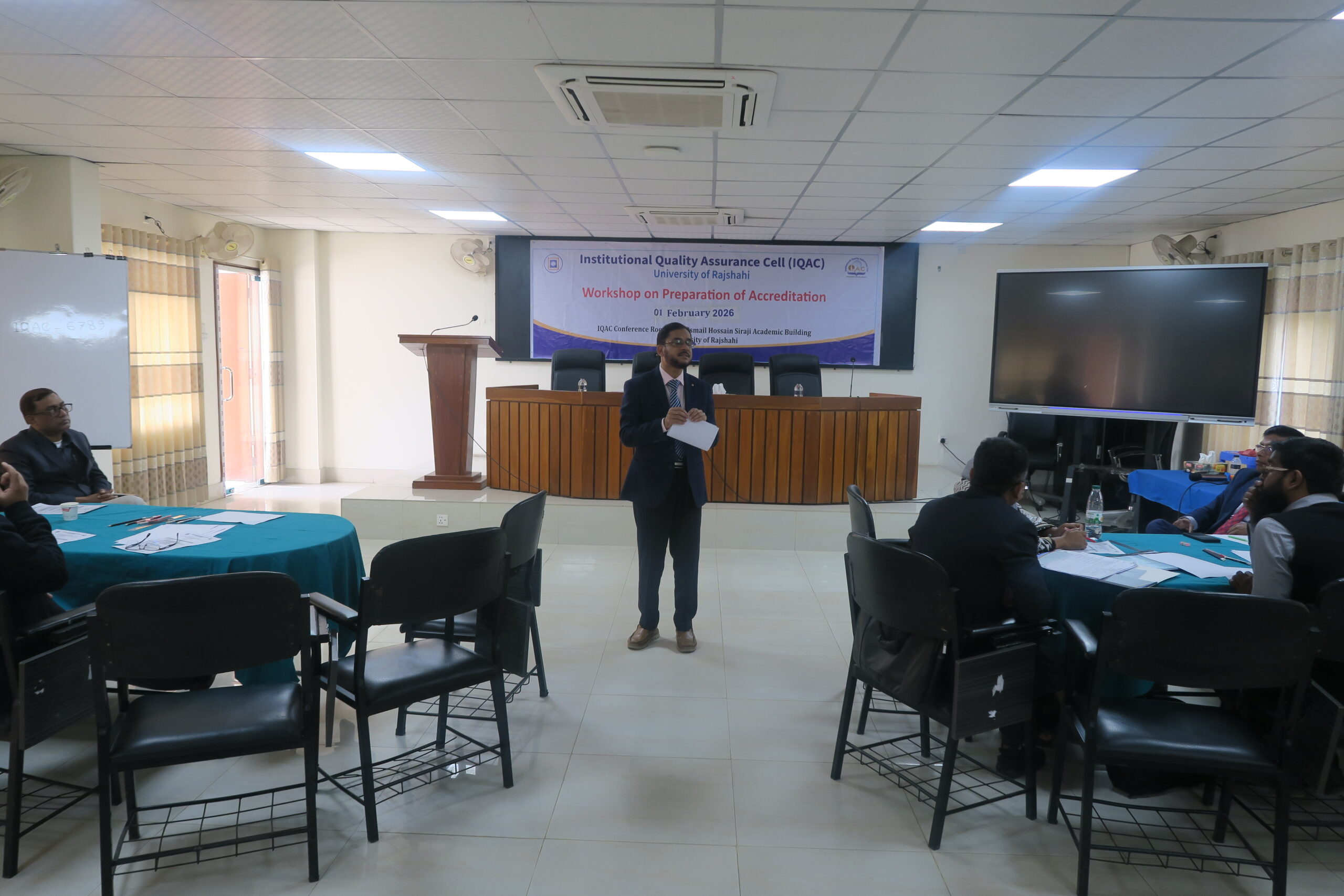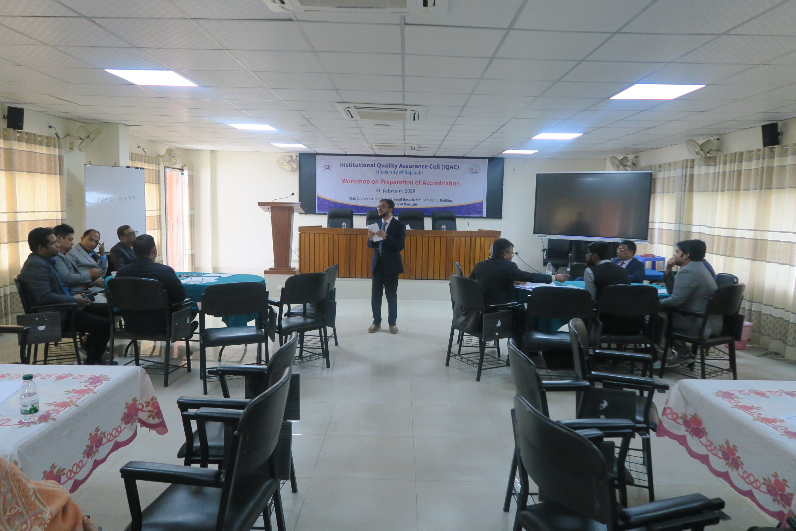 ইনস্টিটিউশনাল কোয়ালিটি অ্যাসুরেন্স সেল (আইকিউএসি) বিশ্ববিদ্যালয়ের প্রোগ্রামসমূহের অ্যাক্রেডিটেশন প্রাপ্তির লক্ষ্যে শিক্ষার গুণগত মান উন্নয়নে বিভিন্ন কার্যক্রম পরিচালনা করে আসছে। এরই ধারাবাহিকতায় ২৫ জানুয়ারি ও ০১ ফেব্রুয়ারি ২০২৬ তারিখে “Workshop on Prepartion for Accreditation” শীর্ষক কর্মশালার ৩য় পর্বে কলা অনুষদের দর্শন, বাণিজ্য অনুষদের মার্কেটিং, হিসাববিজ্ঞান ও তথ্য ব্যবস্থা বিভাগ এবং আইন বিভাগের ৩৪ জন শিক্ষককে অ্যাক্রিডেটেশন প্রাপ্তির দিক নিদের্শনা ব্যবহারিক কাজের মাধ্যমে প্রশিক্ষণ প্রদান করা হয়। দিনব্যাপী এই কর্মশালাটি ৪টি সেশনে পরিচালিত হয়।