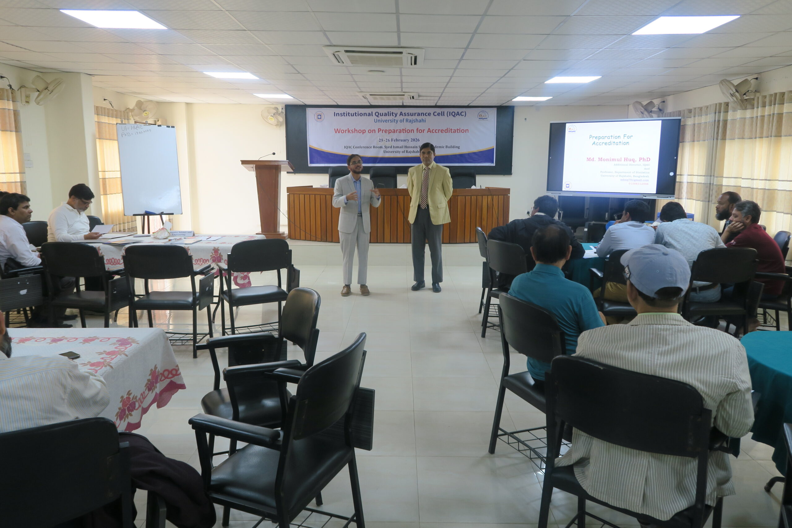 ০২ দুই দিনব্যাপী কর্মশালার রিসোর্স পারসন হিসেবে অনুষ্ঠান পরিচালনা করেন আইকিউএসি–র অতিরিক্ত পরিচালকদ্বয় যথাক্রমে প্রফেসর ড. মো. কামাল উদ্দিন ও প্রফেসর ড. মো. মনিমুল হক।