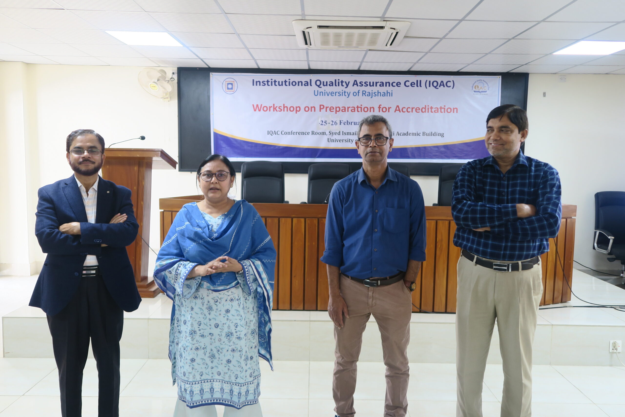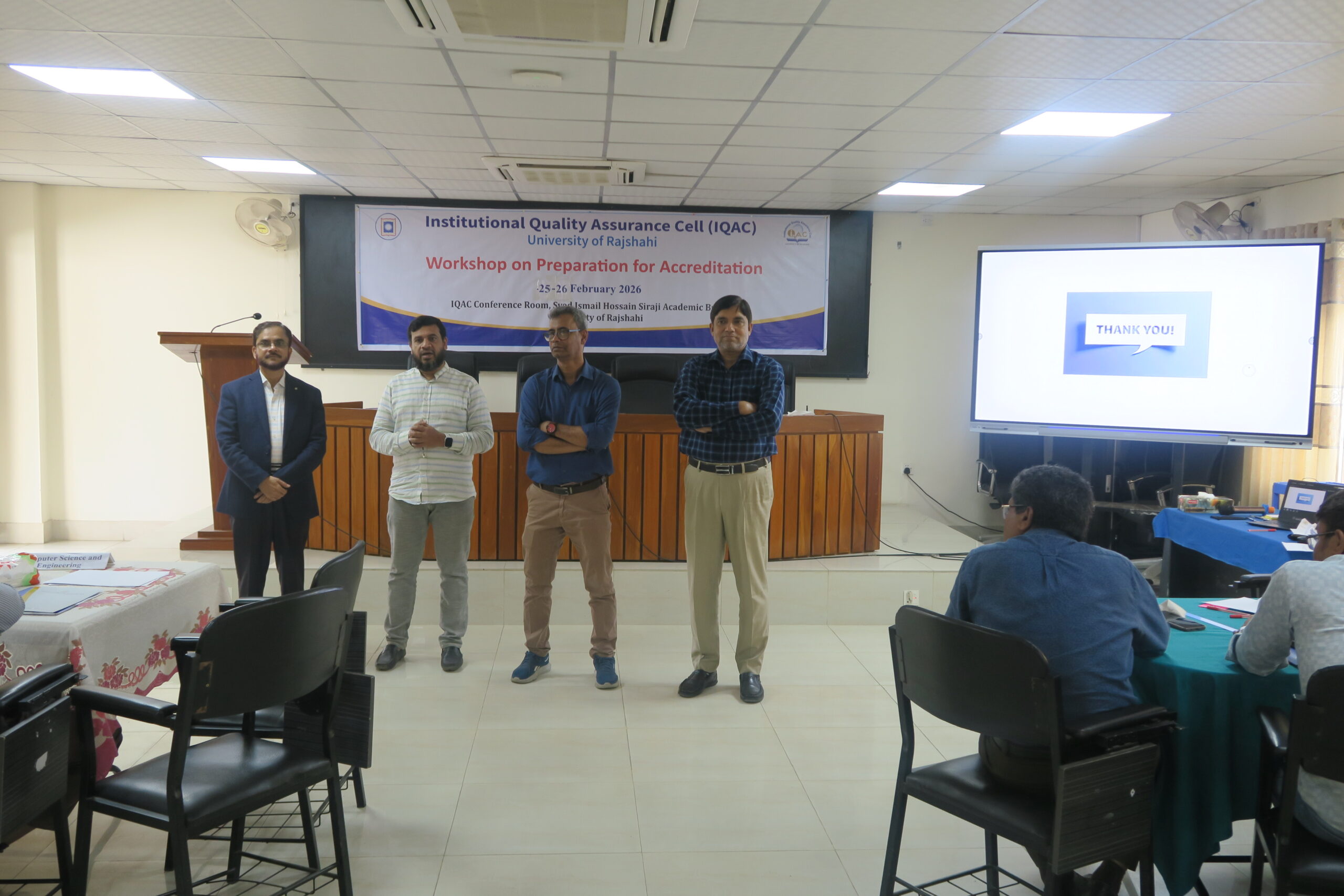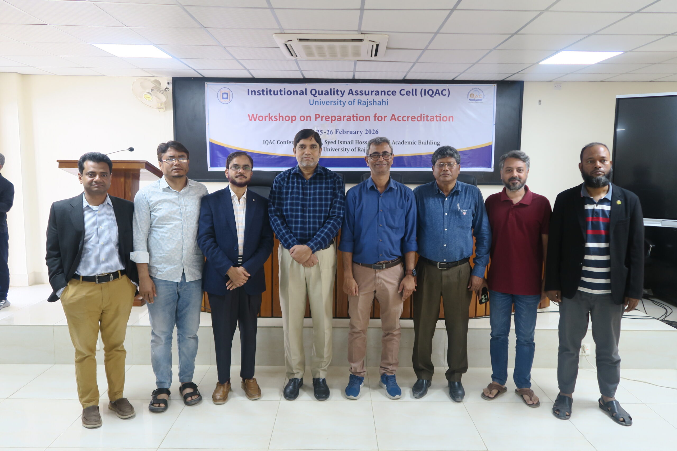 ইনস্টিটিউশনাল কোয়ালিটি অ্যাসুরেন্স সেল (আইকিউএসি) বিশ্ববিদ্যালয়ের প্রোগ্রামসমূহের অ্যাক্রেডিটেশন প্রাপ্তির লক্ষ্যে শিক্ষার গুণগত মান উন্নয়নে বিভিন্ন কার্যক্রম পরিচালনা করে আসছে। এরই ধারাবাহিকতায় ২৫ ও ২৬ ফেব্রুয়ারি ২০২৬ তারিখে “Workshop on Prepartion for Accreditation” শীর্ষক কর্মশালার প্রকৌশল অনুষদের ইনফরমেশন সায়েন্স এন্ড কমিউনিকেশন ইঞ্জিনিয়ারি, কম্পিউটার সায়েন্স এন্ড ইঞ্জিনিয়ারিং এবং ফলিত রসায়ন ও রসায়ন প্রকৌশল বিভাগের ২৩ জন শিক্ষককে অ্যাক্রিডেটেশন প্রাপ্তির দিক নিদের্শনা ব্যবহারিক কাজের মাধ্যমে প্রশিক্ষণ প্রদান করা হয়। দিনব্যাপী এই কর্মশালাটি ৪টি সেশনে পরিচালিত হয়।
