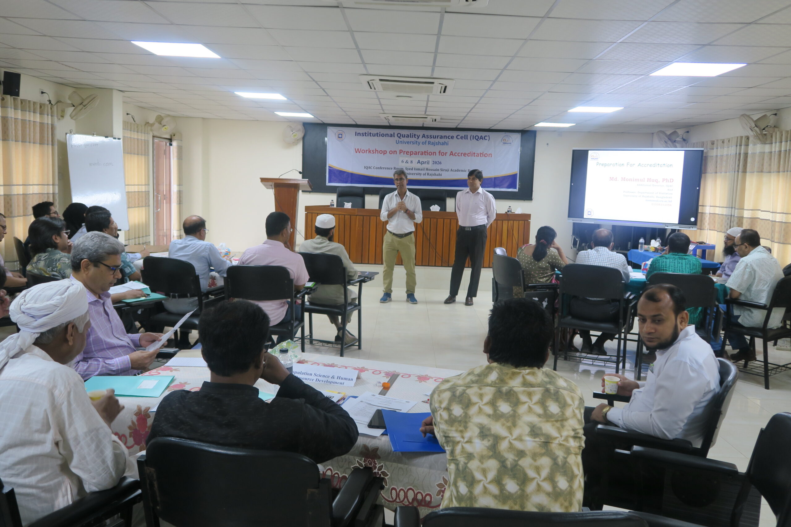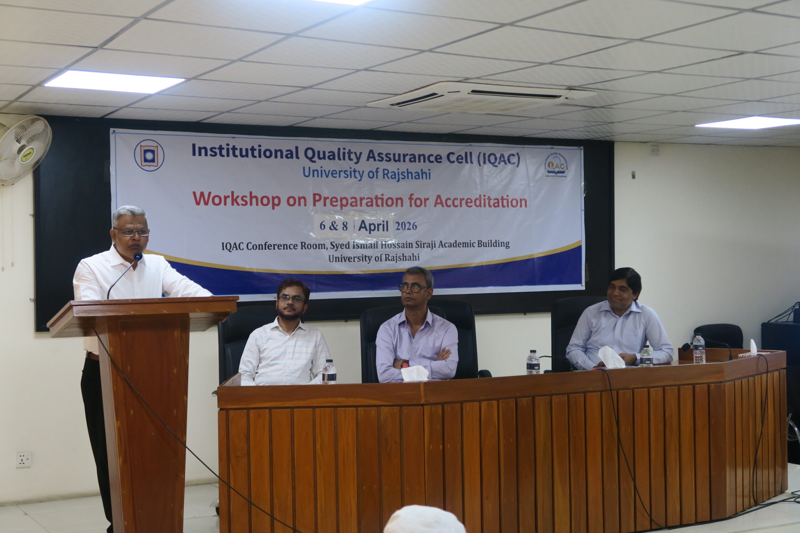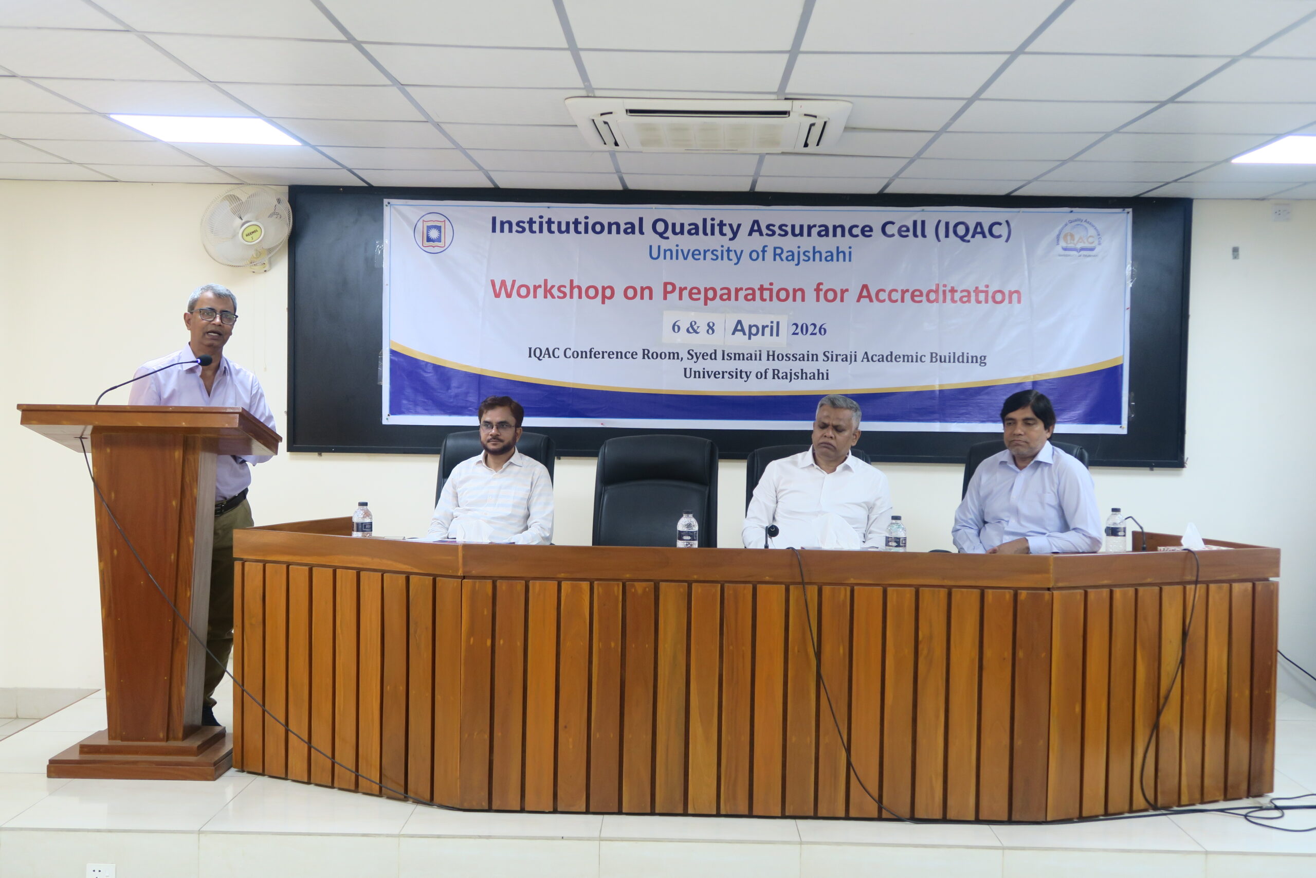 রাজশাহী বিশ্ববিদ্যালয়ের ইনস্টিটিউশনাল কোয়ালিটি অ্যাসিউরেন্স সেল (আইকিউএসি)-এর উদ্যোগে ‘Workshop on Preparation for Accreditation’ শীর্ষক দুই দিনব্যাপী একটি কর্মশালা অনুষ্ঠিত হয়েছে। ৬ ও ৮ এপ্রিল ২০২৬ তারিখে বিশ্ববিদ্যালয়ের আইকিউএসি কনফারেন্স রুমে আয়োজিত এ কর্মশালায় সভাপতিত্ব করেন আইকিউএসি’র পরিচালক প্রফেসর ড. মো. আবু রেজা।