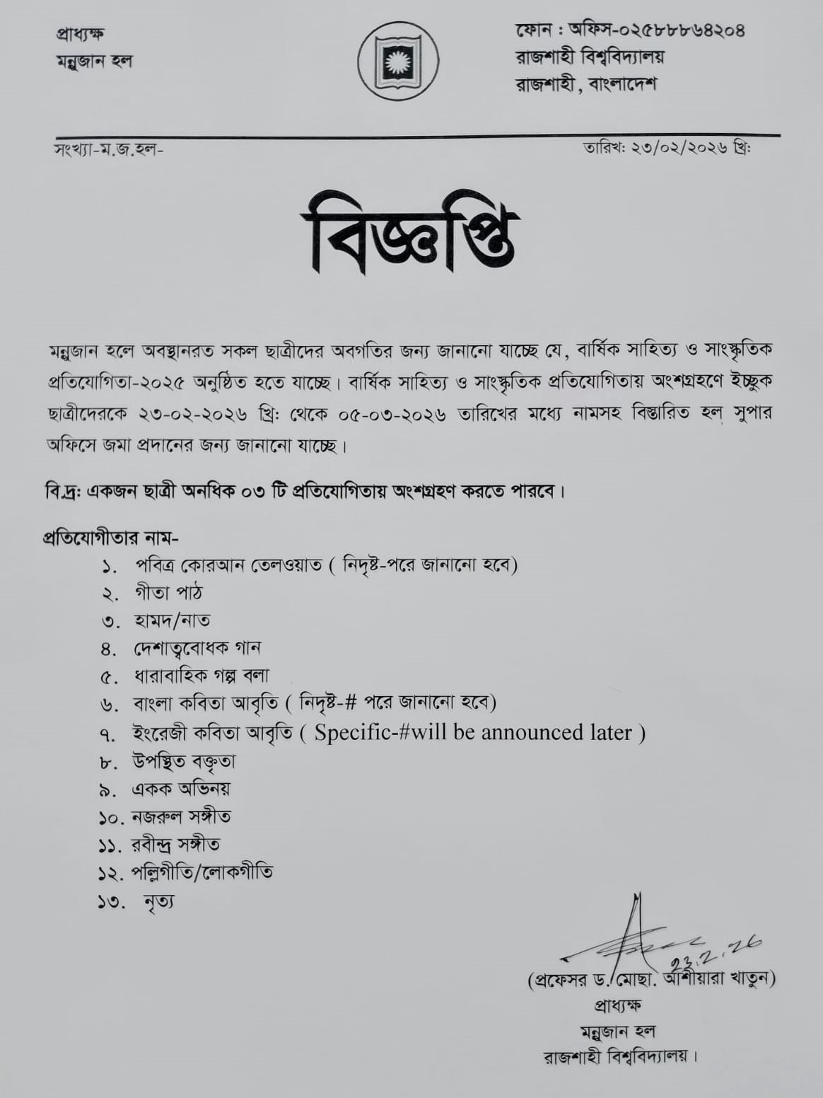 All rights reserved © 2026, Mannujan Hall. Powered by ICT Center, RU.