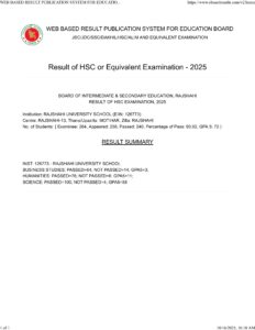 রা.বি. স্কুলের এইচএসসি পরীক্ষা-২০২৫ এর ফলাফল