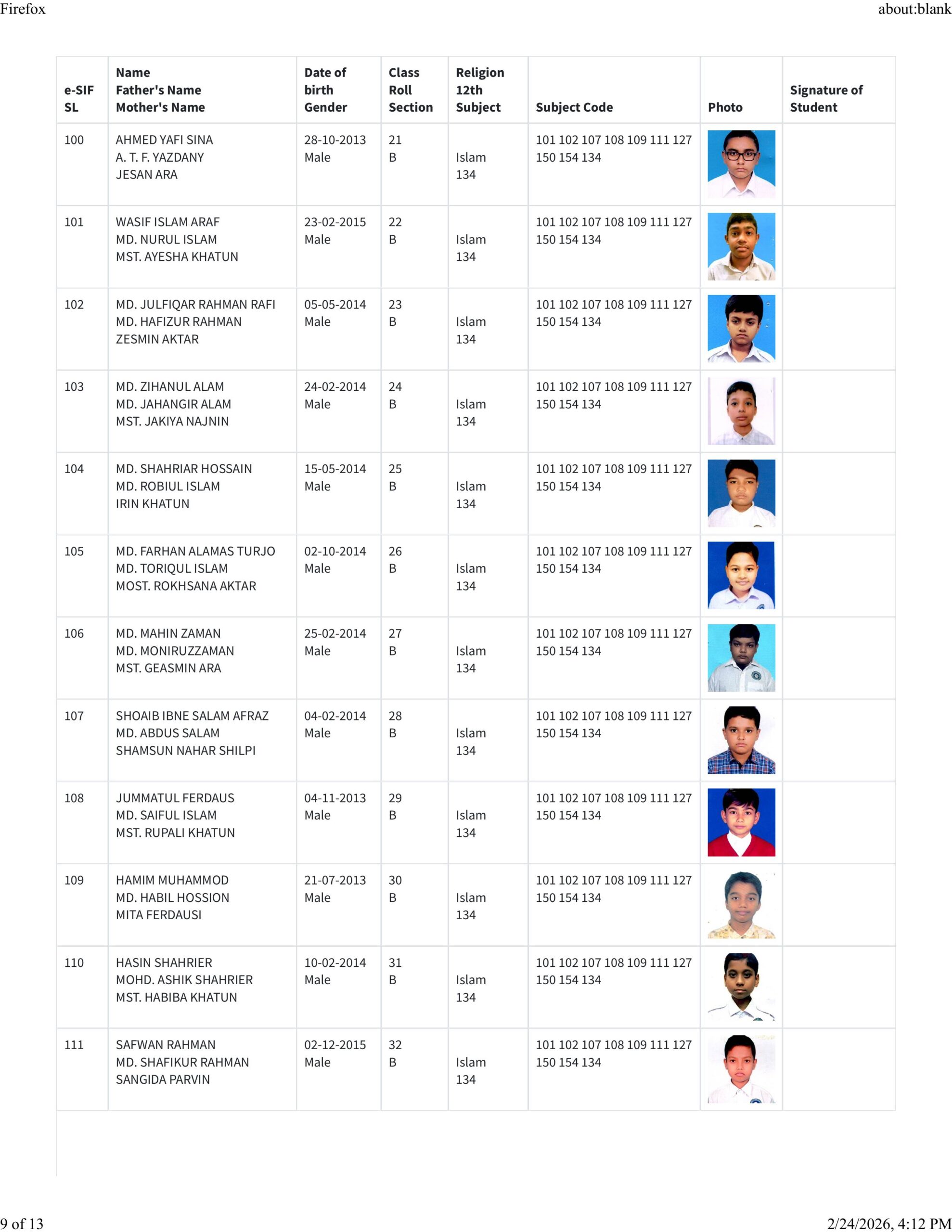 • Teacher List